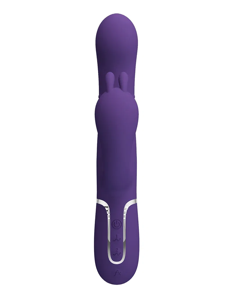 Trostruki vibrator od Pretty Love je elegantno zakrivljeni vibrator u obliku zeca sa analnim stimulatorom, koji pruža istovremenu vaginalnu, klitoralnu i analnu stimulaciju.