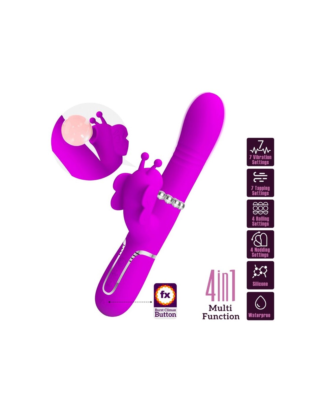 Dizajniran za maksimalno zadovoljstvo, ostanite u krevetu sa vibratorom Pretty Love Rabbit. Vibrator ima 7 podešavanja vibracije, 7 podešavanja tapkanja i 4 podešavanja klimanja glavom! Sve ove karakteristike mogu da rade zajedno kako bi zadovoljile dve vruće tačke odjednom! Štaviše, sa jednim redom krutih perli koje se kreću gore-dole u ​​uzbudljivoj intimnoj masaži, uživajte u tri podešavanja brzine dok stalno trljate svoju osetljivu slatku tačku. Za dodatno zadovoljstvo, pritisnite dugme Burst Climax da biste istražili svoje neverovatne, zadivljujuće orgazme. KARAKTERISTIKE: 1. Funkcija: 7 funkcija vibracije, 7 funkcija tapkanja, 4 funkcije balansiranja, 4 funkcije golicanja. 2. Jačina: Magnetno USB punjenje. 3. Materijal: ABS silikon. 4. Boja: Ljubičasta.